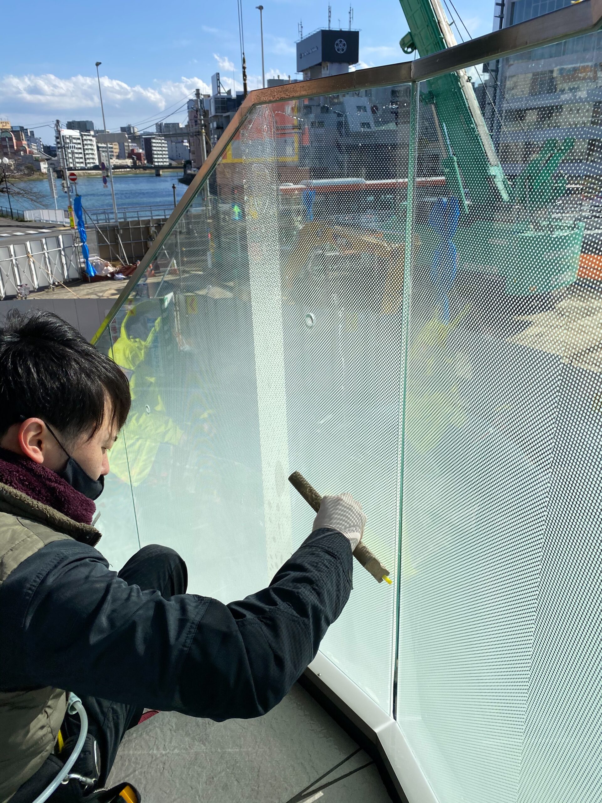 sangetsu様 GF-1814を施工いたしましたのでご紹介いたします。「Grain グレイン」 横使い使用のセンターグラデーションガラスパーテーションの目隠し用途にオススメのフィルムです。