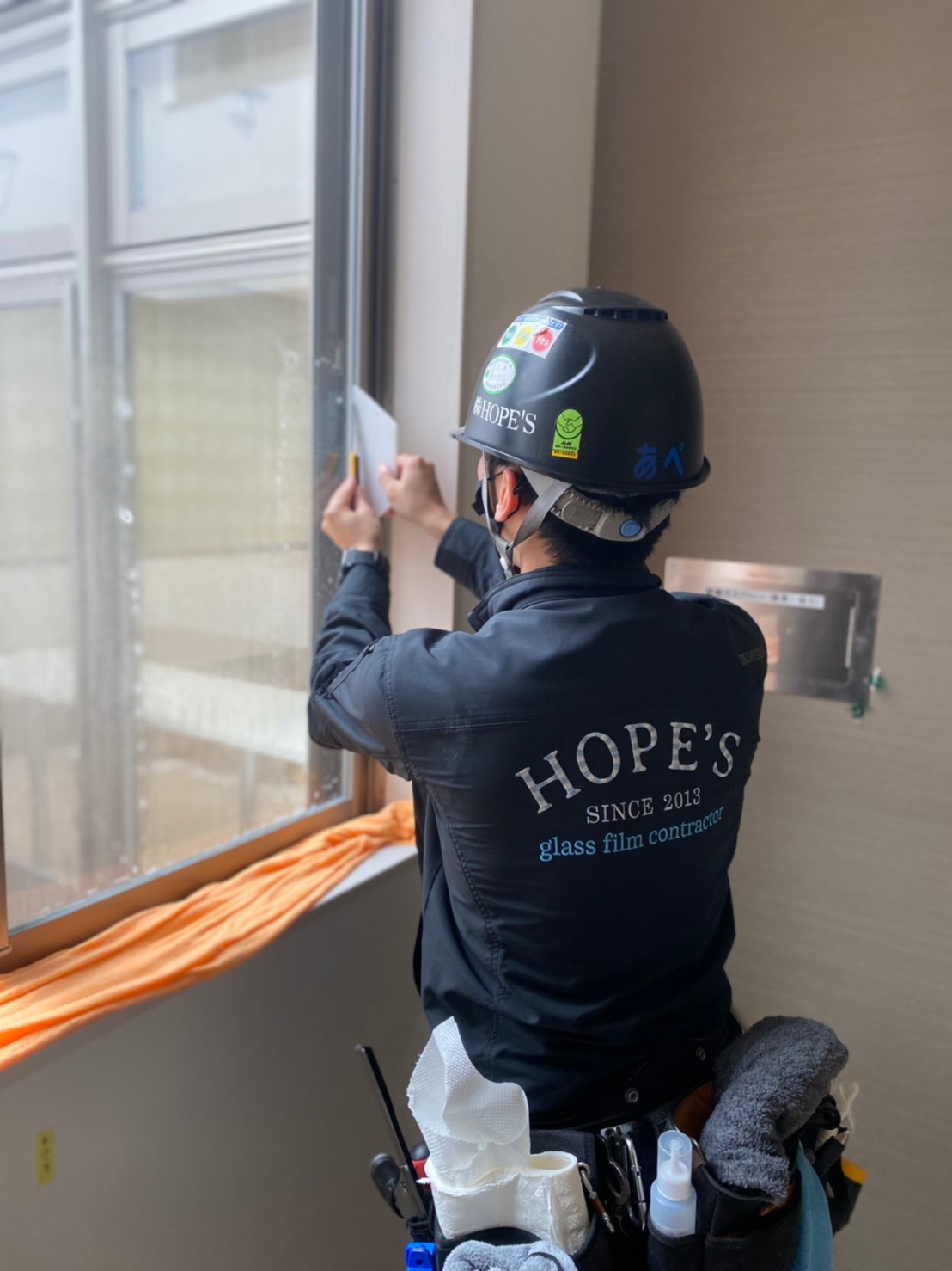 sangetsu様 GF-1814を施工いたしましたのでご紹介いたします。「Grain グレイン」 横使い使用のセンターグラデーションガラスパーテーションの目隠し用途にオススメのフィルムです。
